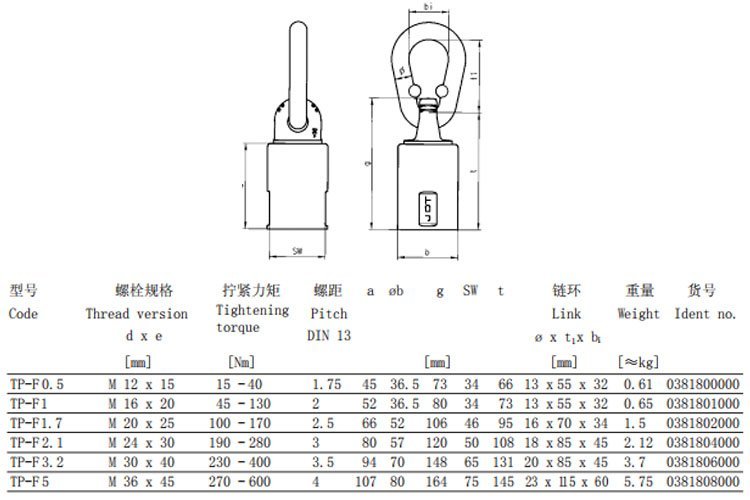 TP-F型旋轉吊環為德國JDT品牌,保質期12個月,龍海起重鄭重承諾,產品均為原裝進口,如有假貨以貨值百倍賠償!更多詳情可咨詢龍海起重曲女士05356106527!