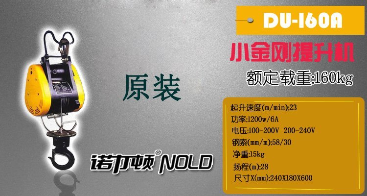 小金剛提升機,又稱小金鋼電動葫蘆,小金剛迷你葫蘆,它與大陸生產的電動葫蘆區別:小金剛提升機特點起升速度快,起升速度每分鐘可達到23米,是國內產品無法達到的提升速度. 進口小金剛提升機起體積小,自重輕.便攜式設計,在220V電源下就可使用,在適合場所使用;小金剛提升機采用交直流電機,沒有熱保護,不會因為工作時間過長而導致斷電,散熱性能好,不會影響你的工作進度.進口小金剛提升機可以將起升高度提升到30米,操作方便非常簡單方便廣大用戶使用.